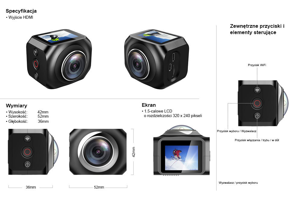R360 EKEN Action Camera patrzy na świat z zupełnie nowej perspektywy 360° Ekran 1.5" / VR360 / szerokokątny 190 / obsługa WiFi |