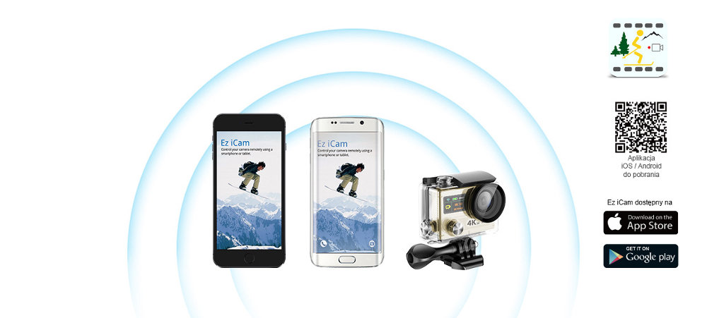 Nowy sposób podglądu, udostępniania oraz zapisu nagrań Obsługuj kamerę H8R na odległość za pomocą smartphone’a lub tabletu z systemem operacyjnym Android lub iOS. Aplikacja Ez iCAM to przeglądarka zawartości oraz wyszukiwarka na żywo, który wyświetla to, co widzi H8R. |
