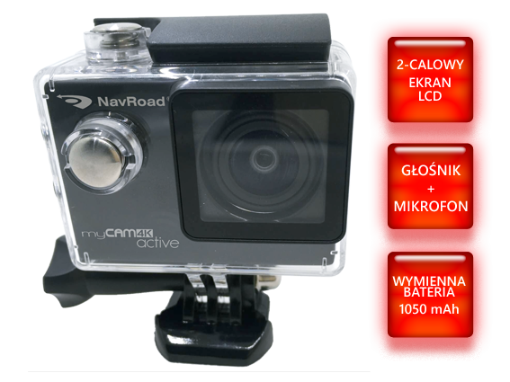 NavRoad myCAM 4K active posiada wymienną baterię o pojemności 1050 mAh, która zapewnia możliwość nagrania nawet 80 minut materiału filmowego w rozdzielczości Full HD. Co więcej, w zestawie z urządzeniem znajduje się dodatkowa bateria, która podwaja czas nagrań i gwarantuje, że oku kamery nie umknie żadne ważne zdarzenie. Dzięki dwucalowemu ekranowi LCD możemy podejrzeć rejestrowany materiał, a ponadto tak duży wyświetlacz zdecydowanie ułatwia odpowiednie umiejscowienie kamery czy wykonanie zdjęcia. NavRoad myCAM 4K active posiada czuły mikrofon, który zarejestruje wszystkie dźwięki do niego dochodzące. Z kolei wbudowany głośnik zapewnia możliwość odtworzenia zapisanych dźwięków. |