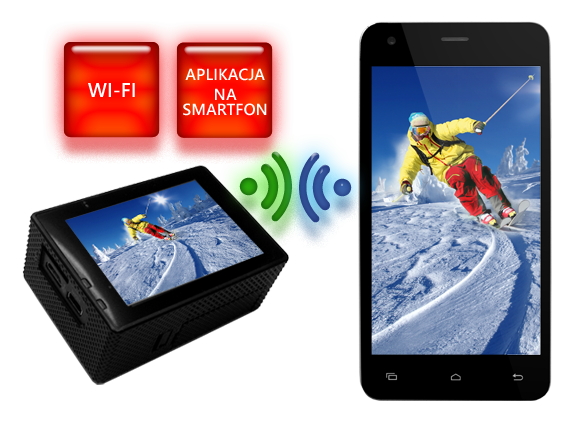 | NavRoad myCAM 4K active wyposażony jest w moduł WiFi, a dzięki dedykowanej aplikacji (Android + iOS) kamera może zostać błyskawicznie połączona ze smartfonem. Tym samym użytkownik otrzymuje podgląd na żywo na większym ekranie. Pozwala on również na zdalne nagrywanie filmów, robienie zdjęć, zmianę ustawień, a także pobieranie do pamięci smartfona zarejestrowanego na kamerze materiału filmowego czy zdjęciowego. | ![]() |