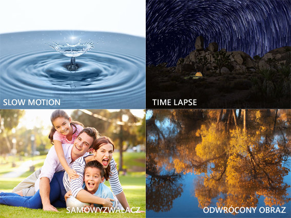 NavRoad myCAM 4K active umożliwia specjalne tryby nagrań, które wydatnie zwiększają możliwości kamery. Są to m.in. - Slow-Motion (zwolnione tempo) – dzięki nagraniu nawet 120 klatek na sekundę, umożliwia płynne odtwarzanie materiału wideo (30 klatek/s) w czterokrotnie zwolnionym tempie lub przy nagraniu 60 klatek/s – dwukrotnie. - Time-Lapse (film poklatkowy) – jedna klatka filmu jest rejestrowana zgodnie z zadanym interwałem w sekundach. Funkcja pozwala nagrywać niesamowite ujęcia dnia codziennego (chmury, fale morskie, wschód i zachód słońca, itd.) czy też np. przyjrzeć się wzrastaniu rośliny od nasiona. - Samowyzwalacz pozwala na automatyczne wykonanie zdjęcia, a funkcja automatycznej serii zdjęć pozwala na wykonanie dowolnej liczby następujących po sobie ujęć w określonej jednostce czasu (od 3 do 30 sekund). - Odwrócony obraz, pozwala na rejestrację obrazu „do góry nogami” – wszędzie tam, gdzie nie ma możliwości zainstalowania kamery w inny sposób. |