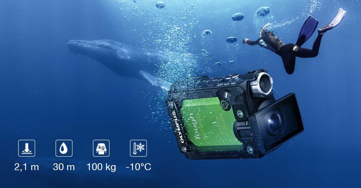 TG-Tracker zdecydowanie wyróżnia się na tle konkurencji, ponieważ łączy w sobie siłę obrazowania bezlusterkowców PEN i OM-D z wytrzymałą konstrukcją aparatów z serii TOUGH. Fani sportów ekstremalnych będą mogli teraz nagrywać filmy imponującej jakości nawet w najtrudniejszych warunkach, a ponadto rejestrować wszystkie szczegóły swoich wypraw oraz trików. TG-Tracker wyposażony jest w ultraszerokokątny obiektyw, 5-osiową stabilizację obrazu, odchylany ekran LCD oraz dodatkowy uchwyt. Dzięki zaawansowanym możliwościom zapisu danych użytkownik ponownie przeżyje ekscytujące wydarzenia, np. skok spadochronowy, trik na kitesurfingu czy spływ rwącymi, górskimi potokami.