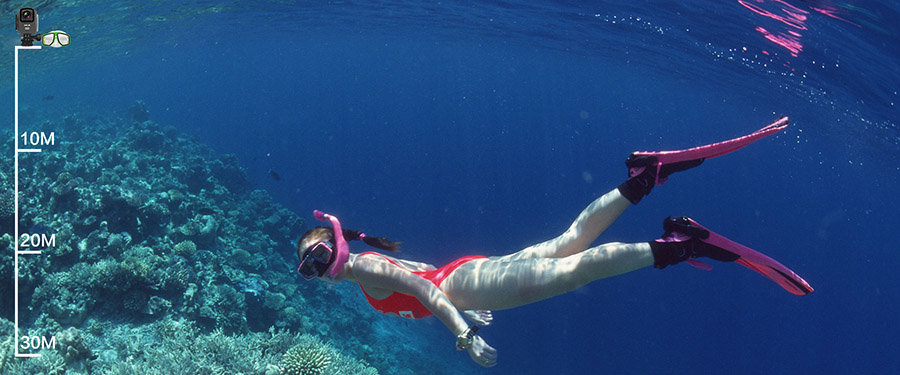 | Idealna do nurkowania Kamera SJCAM M20 posiada w zestawie wodoszczelną obudowę, dzięki której możesz bezpiecznie nurkować do głębokości 30m. |