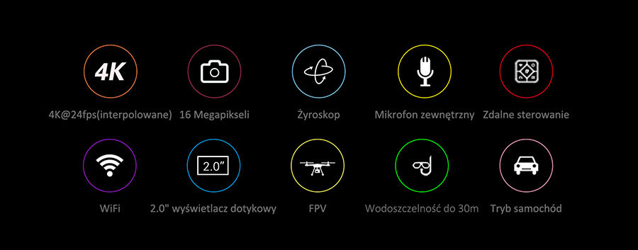 | Dwucalowy ekran dotykowy LCD W przypadku kamery sportowej z tak wieloma funkcjami jak SJ6 Legend, ekran dotykowy to podstawa. Wiemy, jak istotny jest czas, dlatego ten doskonały dwucalowy ekran LCD pozwoli ci na nagrywanie legendarnych ujęć w przeciągu zaledwie kilku sekund! Szybko reaguje i nie sprawia najmniejszych problemów. Kamera SJ6 Legend może się pochlubić matrycą Panasonic o 16 megapikselach, która pozwala na rejestrowanie nagrań w rozdzielczości 4K z częstotliwością 24fps (interpolowane) albo 2,7K przy 30fps. Oczywiście możesz wybrać również rozdzielczość Full HD o częstotliwości aż 60fps. Rejestruj na fotografiach czy nagraniach wideo malownicze krajobrazy i niecodzienne wydarzenia bez jakichkolwiek ograniczeń. Stań się legendą już dziś. |