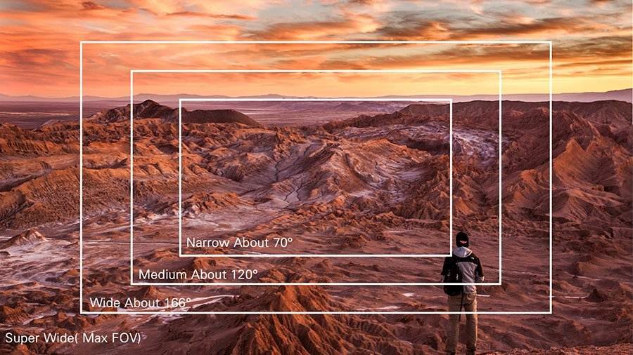 | Regulowany ultraszeroki kąt widzenia SJCAM SJ7 Star posiada funkcję ustawień kąta widzenia (FOV) w zakrsie do 166°. Dzięki temu uchwycisz wszystko, czego potrzebujesz, bez konieczności późniejszej edycji czy komponowania wymarzonego ujęcia z kilku zdjęć. |