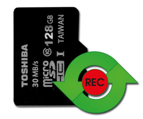 Kamera obsługuje karty microSD/SDHC/SDXC o pojemności nawet 128 GB (rekomendowane karty minimum klasy 10/UHS1)), a w przypadku zapełnienia karty pamięci, rejestrator automatycznie zacznie nadpisywać najstarszy materiał filmowy z wyłączeniem materiałów zabezpieczonych. |