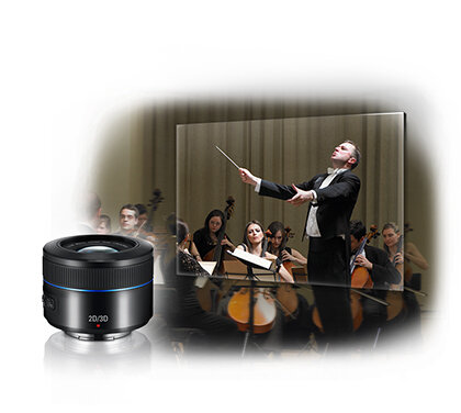 Profesjonalna jakość – po cichu! Cichy autofocus Nie możesz wymagać idealnej ciszy na planie, możesz jednak filmować doskonałej jakości obrazy i robić cudownie ostre zdjęcia bez rozpraszającego dźwięku towarzyszącego ustawianiu ostrości. Obiektyw Samsung 2D / 3D 45 mm wyposażony jest w wysoko wydajny silnik, który zapewnia cichą pracę mechanizmu. Ustawianie ostrości przebiega płynniej, dzięki czemu robienie zdjęć staje się bardziej naturalne. A podczas odtwarzania twoich autorskich materiałów filmowych oglądający będą mogli skoncentrować się na obrazie i dźwięku, a nie na hałasie obiektywu. |