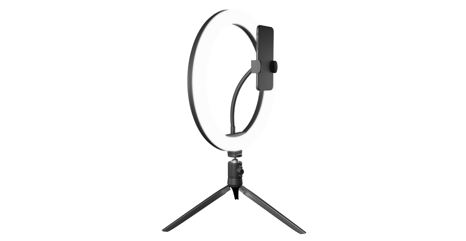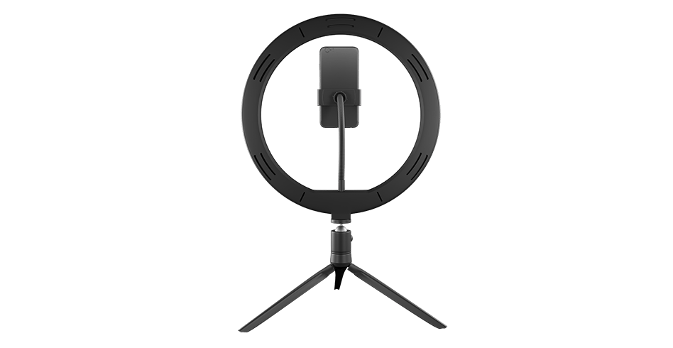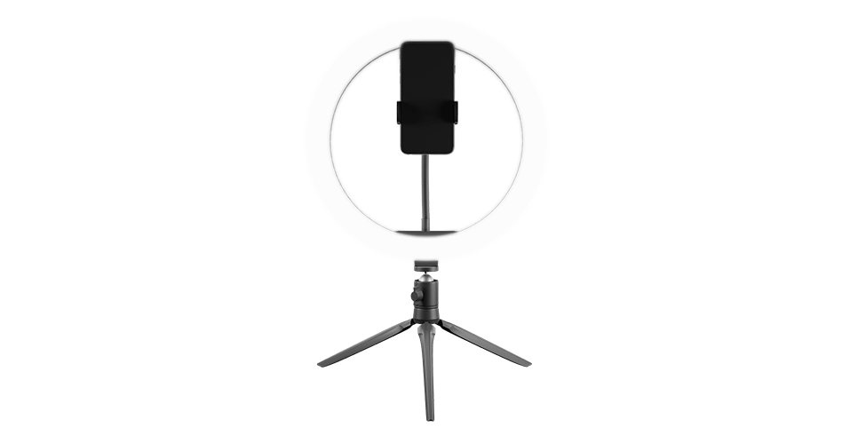 | Solidna konstrukcjaPodstawą lampy jest składany tripod z gumowanymi nóżkami, który zapobiegnie przemieszczaniu się lampy po powierzchni blatu, a także umożliwi wykonywanie ujęć z ręki. Elastyczny uchwyt na telefon pozwoli umieścić urządzenie w wybranym miejscu i uzyskać perfekcyjny kadr, a głowica kulkowa da możliwość ustawienia ringu pod odpowiednim dla siebie kątem. |