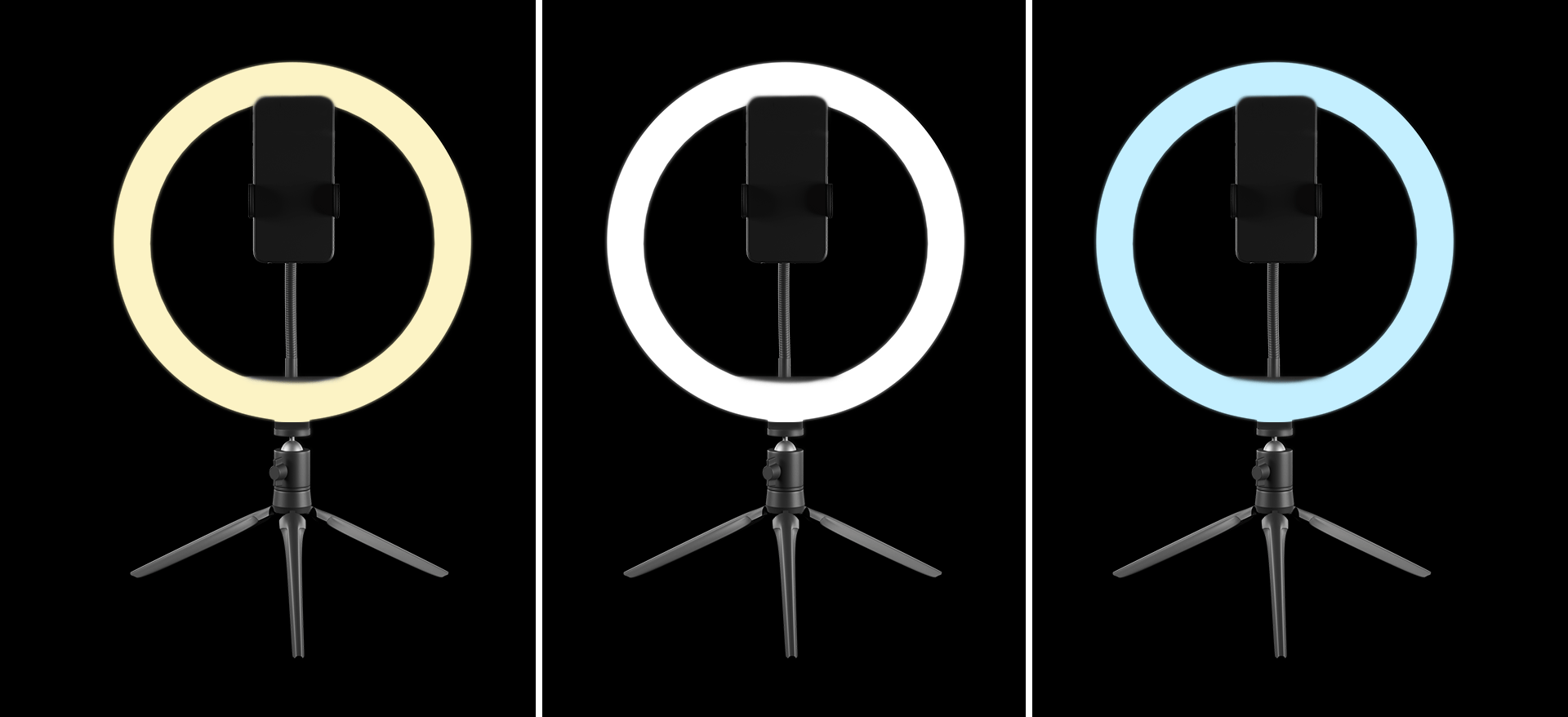 Niezawodne źródło światłaLampa pierścieniowa posiada 120 rozmieszczonych równomiernie w obudowie diod led i emituje światło o temperaturze w zakresie 3000 – 5500K. Trzy temperatury barwowe i 10 poziomów natężenia światła pozwolą dostosować odcień oświetlenia do swoich preferencji. Barwa ciepła umożliwi uzyskanie efektu słonecznego dnia, a barwa zimna, która zbliżona jest do koloru żarówki okaże się idealnym wyborem podczas pracy. | |