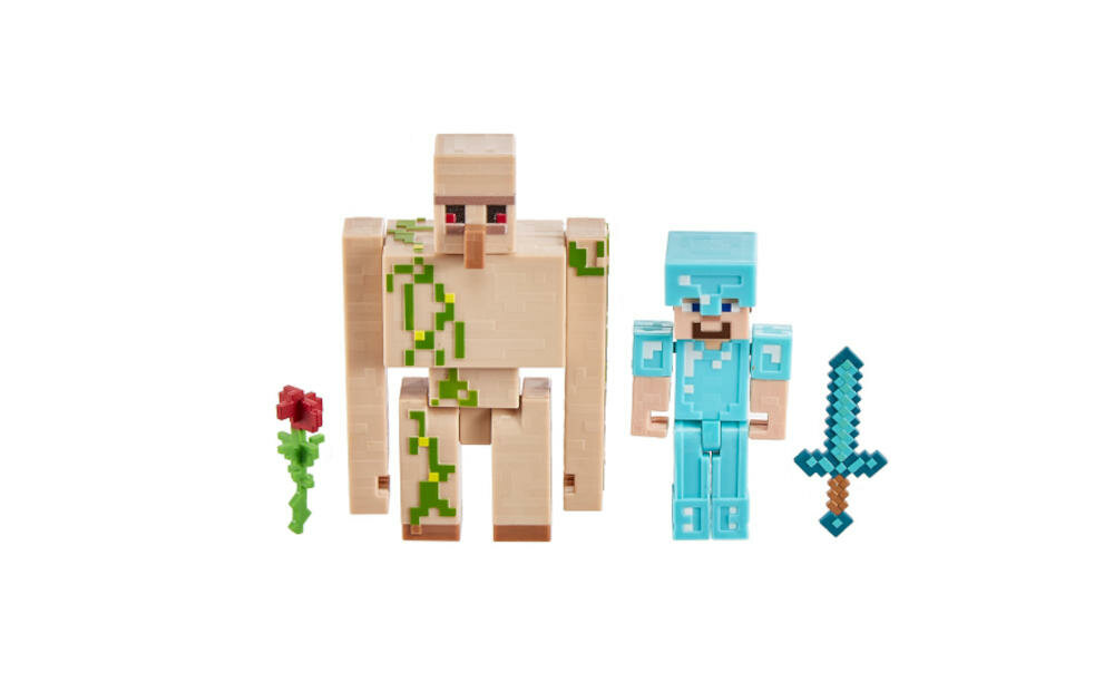 - Figurka MATTEL Minecraft Steve i Żelazny Golem GTP30