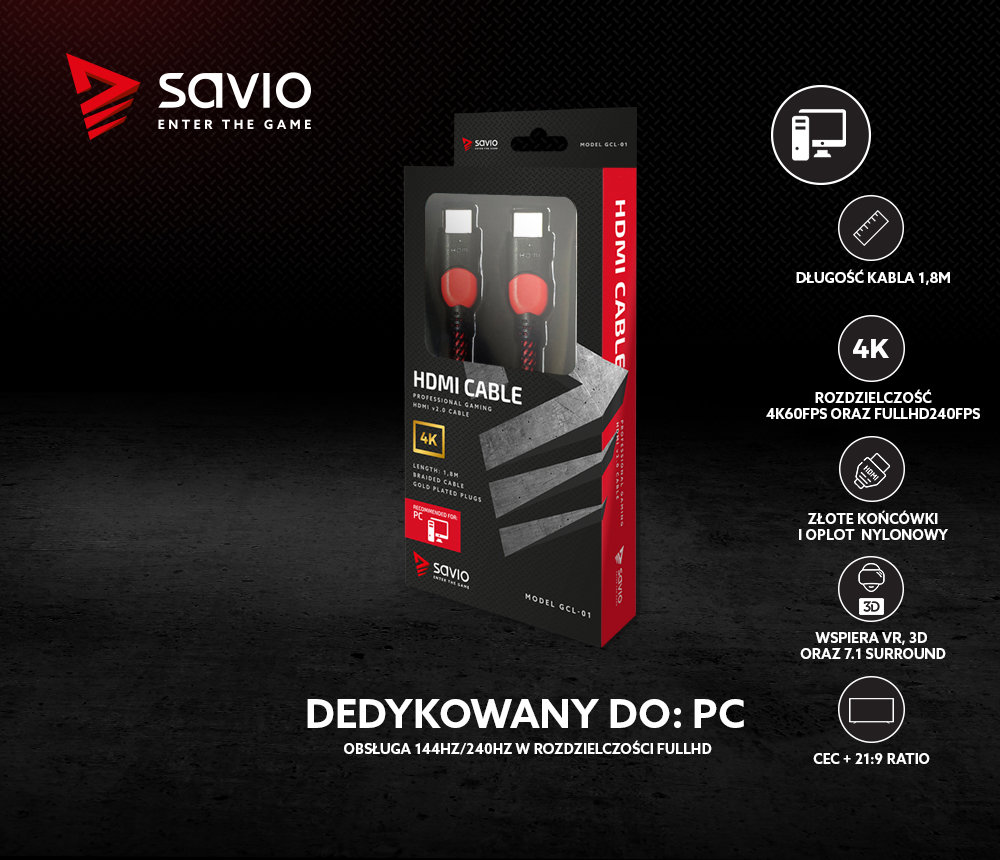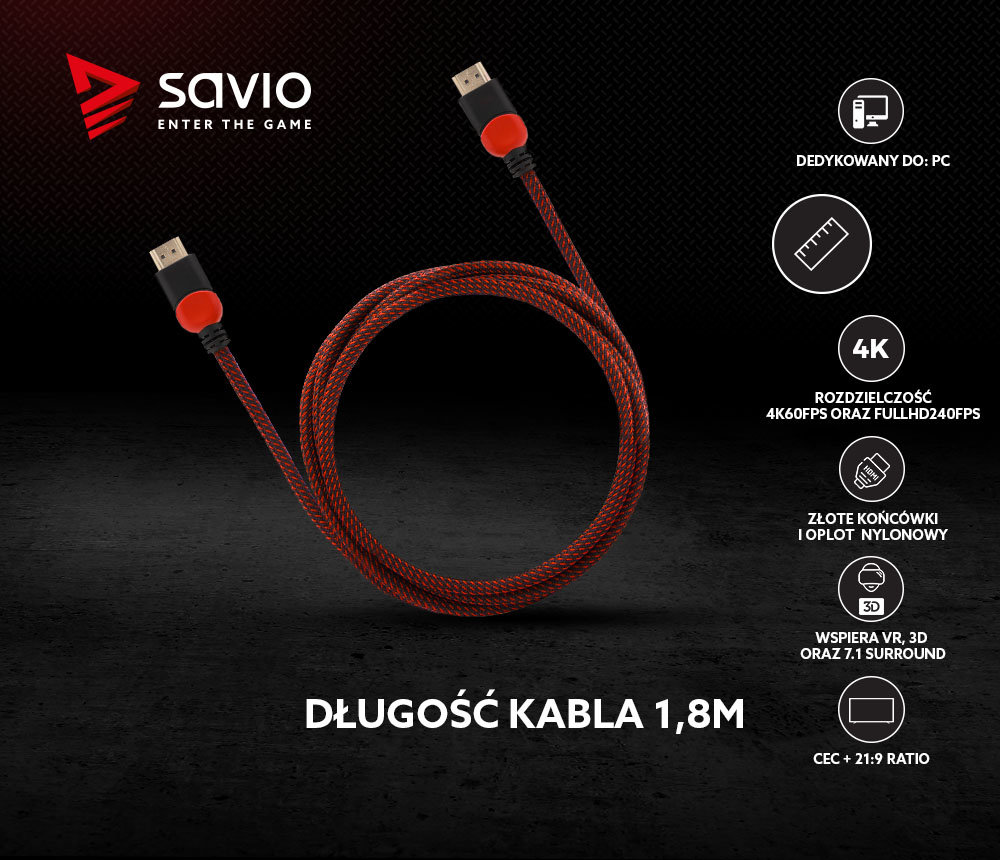 Kabel HDMI - HDMI SAVIO 1.8 m