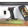 - Uchwyt pełni także rolę stabilnej podstawki z regulowanym kątem nachylenia, dzięki czemu możemy postawić konsolę na stoliku lub dowolnym innym miejscu