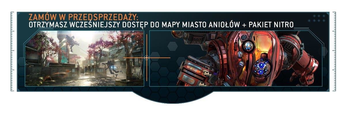 | Zamów grę Titanfall™ 2 w przedsprzedaży, a otrzymasz wcześniejszy dostęp do „Miasta Aniołów”, odświeżonej wersji popularnej mapy znanej z pierwszej odsłony serii Titanfall. Mapa ukaże się w grudniu tego roku. Ponadto, otrzymasz pakiet Nitro Spopielacza zawierający specjalne barwy wojenne „Nitro” i grafikę dziobową „Podżegacz”, unikalny identyfikator i motyw Titanfall. Zawartość: - Zagraj na mapie Miasto Aniołów 3 dni przed jej wydaniem w grudniu tego roku - Pakiet Nitro Spopielacza: - Barwy wojenne Nitro dla Spopielacza - Grafikę pancerza „Podżegacz” - Identyfikator ZŁOTY - Tryb Bestii |