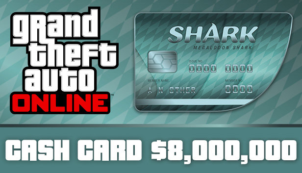 Karta Megalodon Shark Card zawiera 8.000.000 wirtualnych dolarów GTA do wykorzystania w grze Grand Theft Auto Online.