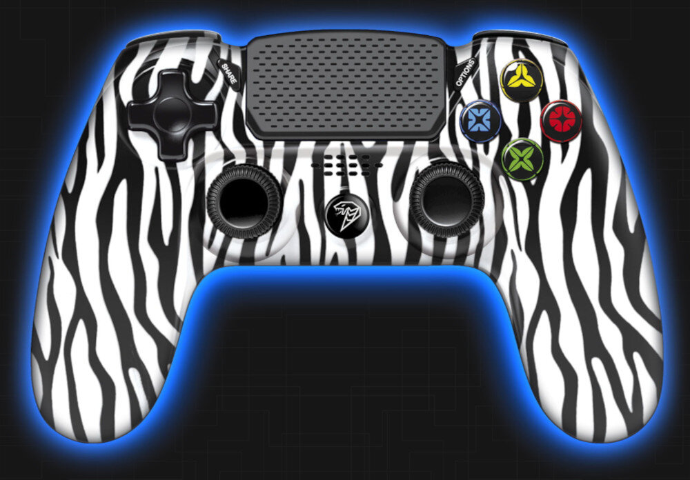 Kontroler COBRA QSP415 to akcesorium, dzięki któremu gra na urządzeniu PlayStation 4 stanie się jeszcze większą przyjemnością. Sprzęt ten wyposażony został w ergonomiczne przyciski, podświetlany przycisk HOME, przyciski boczne oraz frontową płytę, która informuje światłem LED o stanie podłączenia oraz naładowania baterii, a także dwa silniki wibracyjne.
