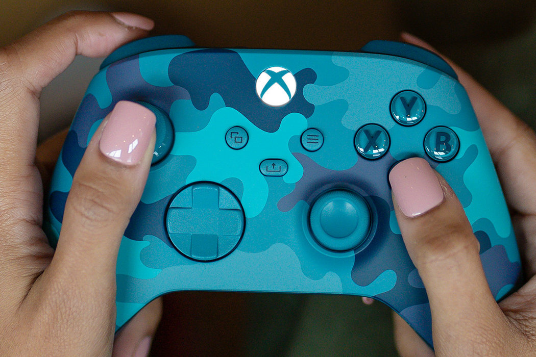 Poznaj kontroler bezprzewodowy Xbox w kolorze mineral camo o unowocześnionym wyglądzie z precyzyjnie zaprojektowanymi powierzchniami i przeprojektowanym kształtem, zapewniającym Ci większy komfort i bezwysiłkową rozgrywkę, z baterią działającą do 40 godzin*.