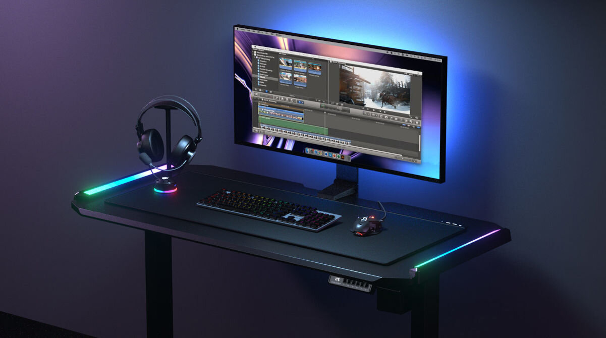 Dzięki funkcji elektrycznej regulacji wysokości możliwe jest płynne dostosowanie wysokości blatu w zakresie od 720 mm do 1150 mm. Przy szerokości blatu wynoszącej 1,22 m oraz głębokości 65 cm zapewniona jest optymalna przestrzeń użytkowa, pozwalająca na umieszczenie monitorów, głośników i innych niezbędnych urządzeń. Regulacja wysokości blatu pomaga wybrać optymalną pozycję podczas grania. W końcu ergonomiczne i ułatwiające organizację biurko zapewnia optymalne warunki do pełnej koncentracji i efektywności podczas sesji gamingowych lub w czasie pracy przy komputerze.