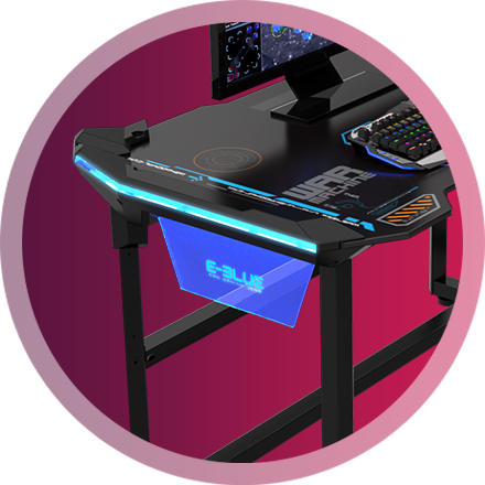 Biurko gamingowe z ledami RGB to unikalny element wyposażenia z dekoracyjnymi efektami świetlnymi w 1 z 16 kolorów. Biurko posiada pilot zdalnego sterowania, służący do ustawienia światła, które może wibrować, mrugać lub stopniowo zmieniać kolor.