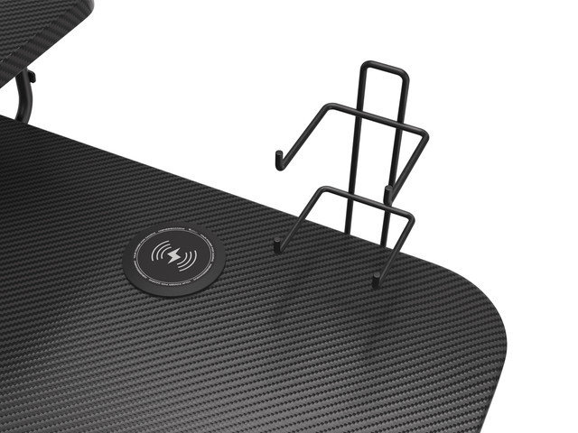 Ładowarka i port USB zawsze pod rękąBlat wyposażony został w hub z trzema portami USB 3.0 oraz przepustami na kable, umożliwiającymi podłączenie urządzeń peryferyjnych i organizację przewodów. Teraz Twoja klawiatura, czy myszka nie zaplącze się w gąszczu kabli. Biurko posiada również wbudowaną w blat bezprzewodową ładowarkę, umożliwiającą indukcyjne ładowanie urządzeń mobilnych. Kiedy więc będziesz chciał się pochwalić znajomym kolejnym zdobytym levelem, Twój telefon zawsze będzie pod ręką. |