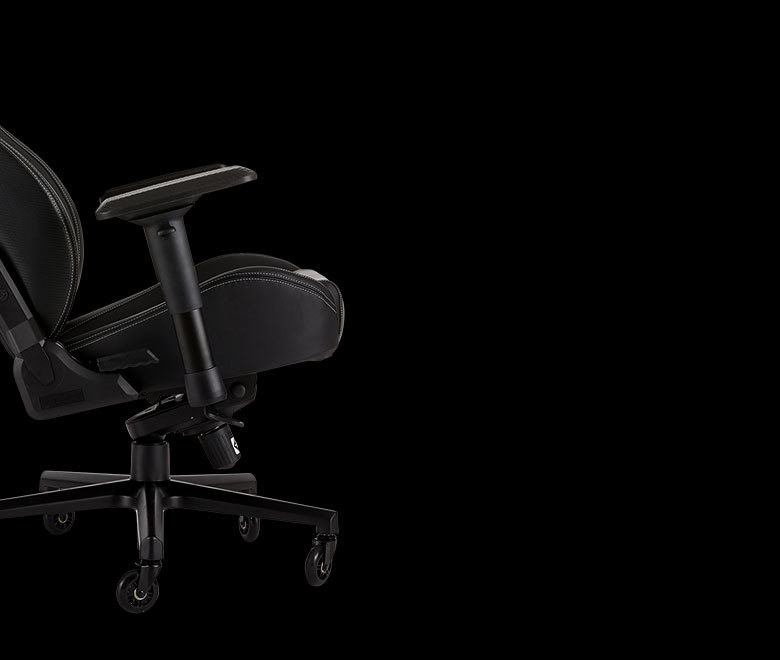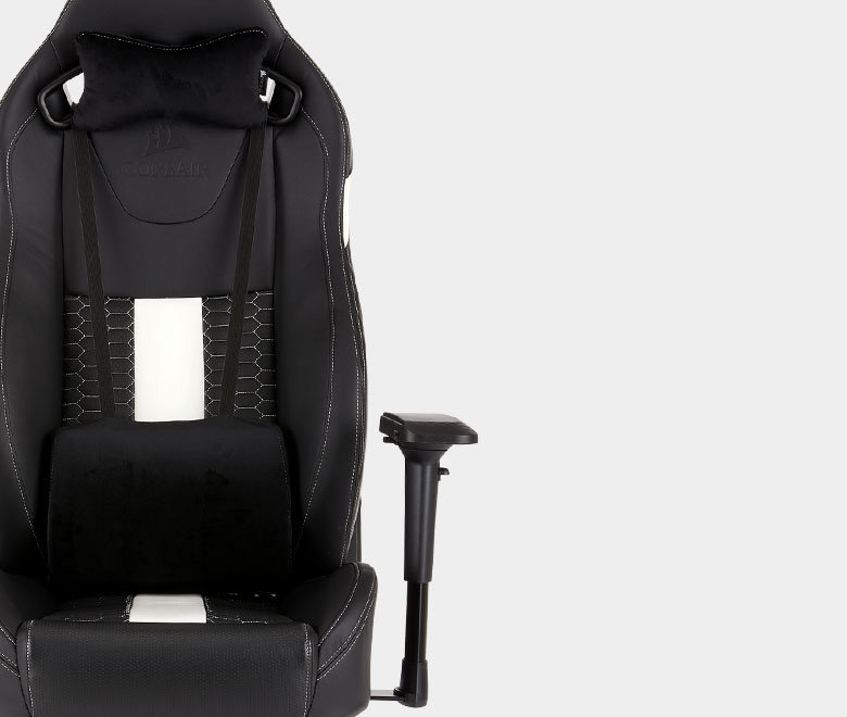 CORSAIR T2 ROAD WARRIOR ma szerokie siedzisko, wysokie oparcie i dwuwarstwowe, niestandardowe akcenty kolorystyczne, które zapewniają styl, wygodę i wytrzymałość, jakich potrzebujesz do długich sesji gier.