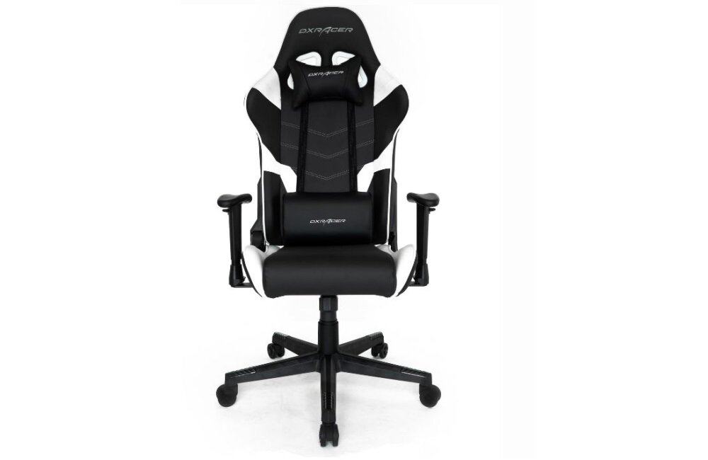 Fotel DXRACER Progress OH P188 NW czarno-biały, zagłówek, poduszka lędźwiowa.