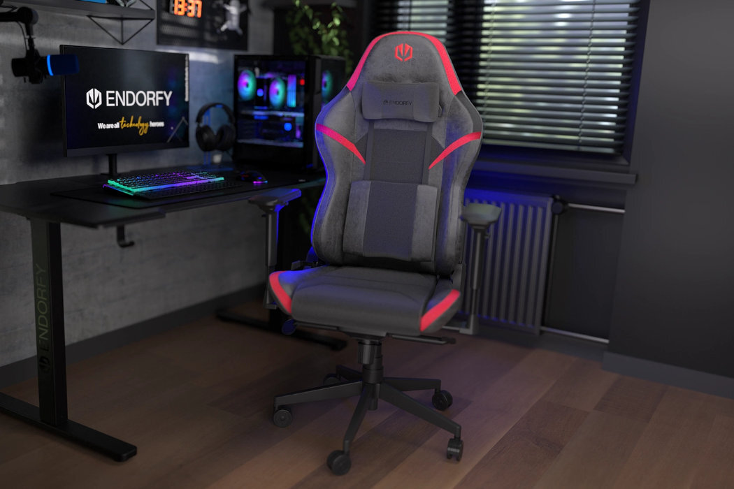 Firma ENDORFY zaprojektowała Scrim tak, żeby użytkownicy pasowali do fotela jak puzzle. Wysokie profilowane oparcie i szerokie siedzisko podpierają ciało, a poduszki z pianki memory foam otulają odcinek szyjny i lędźwiowy.