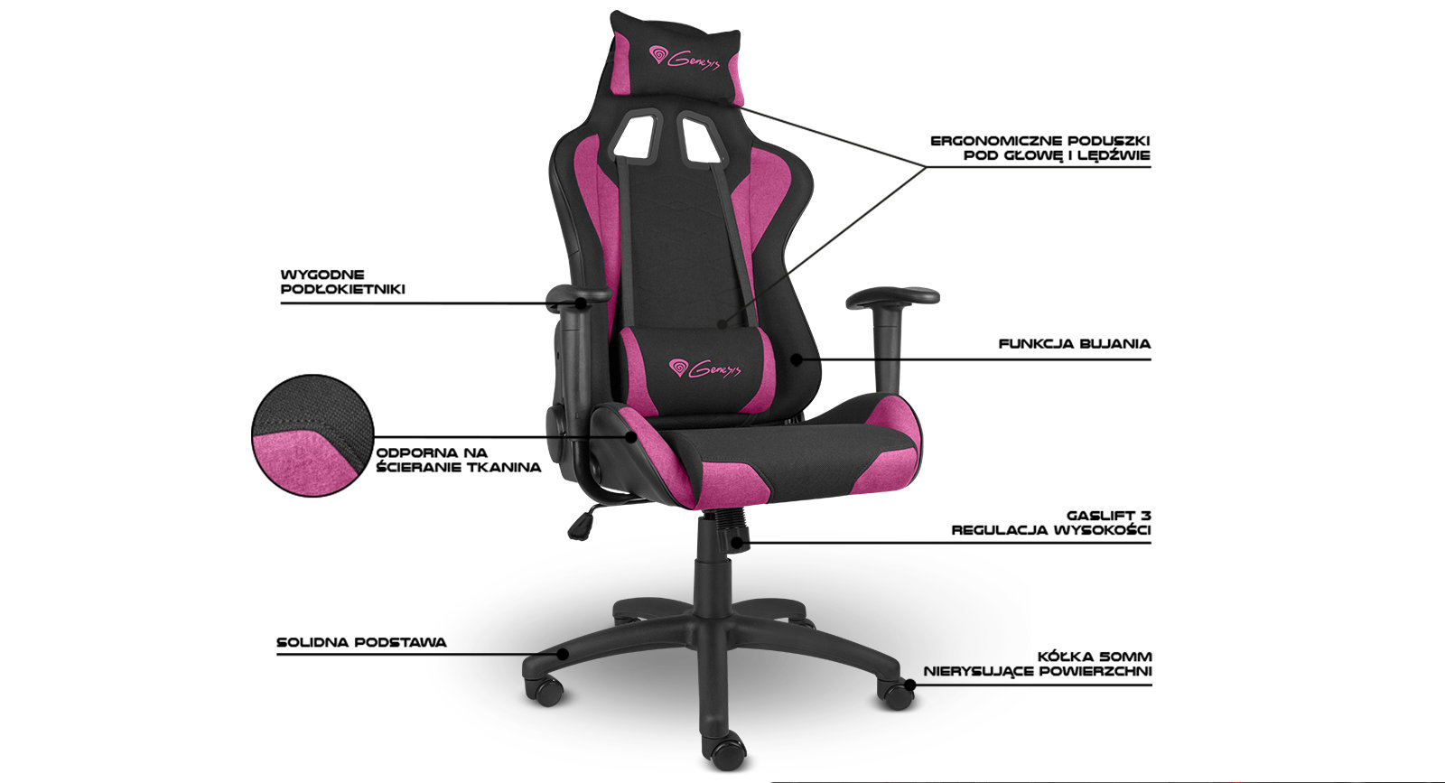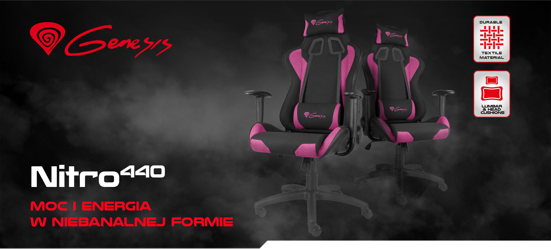Nitro 440 to fotel stworzony dla tych, którzy cenią sobie klasyczny design i pełną funkcjonalność foteli gamigowych. Wysokiej jakości tkanina, z jakiej wykonane zostały siedzisko i oparcie, zapewni ochłodę i odpowiednia wentylację w każdych warunkach. Dzięki energizującym kolorom, fotel nada nieszablonowy charakter każdej przestrzeni. Jego ergonomiczna konstrukcja gwarantuje maksymalny komfort podczas wielogodzinnej rozgrywki lub pracy przy biurku.