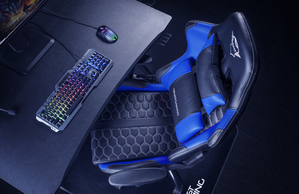 Zarówno kolorystyka fotela TRUST GXT 708, jak i dobór materiałów został odpowiednio przemyślany, by całość doskonale się prezentowała. Z tego też względu obicie fotela wykonano zestawiając ze sobą dwa rodzaje materiałów: tkaninę ze skórą ekologiczną PU.