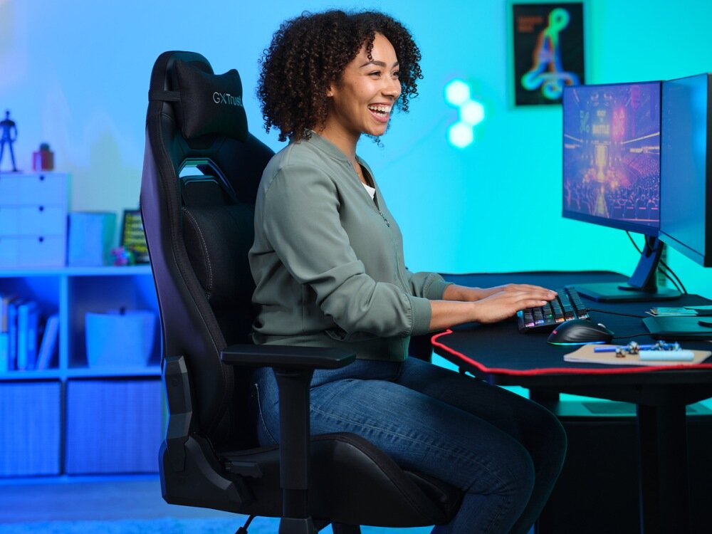 Pełna regulacja wysokości, oparcie, podłokietniki 3D, funkcja blokady nachylenia to atuty, które oferuje fotel TRUST GXT 714 Ruya. Pozwolą one każdemu dobrać idealną pozycję tak, aby każdy moment przed komputerem spędzić komfortowo.