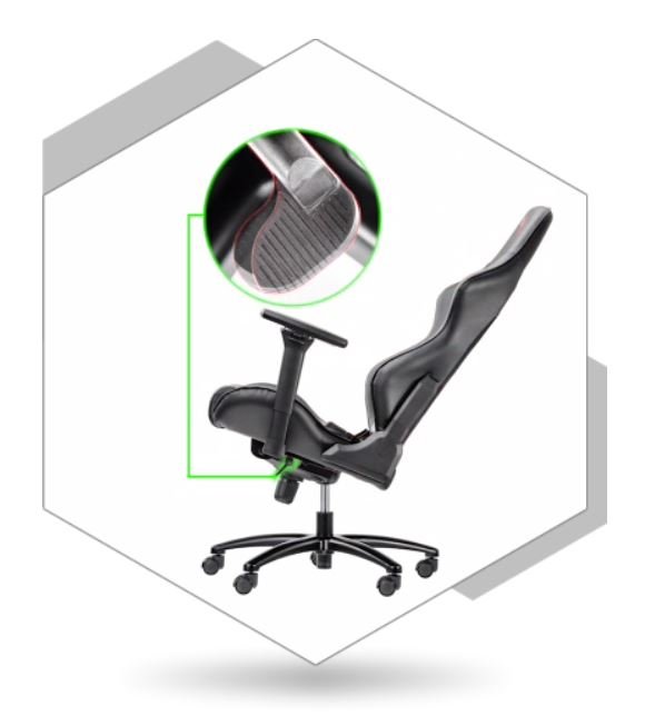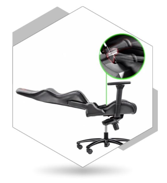 Fotele mają regulowanę funkcję odchylenia, która pozwala dostosować opór do wagi oraz ruchów użytkownika, co zwiększa stabilność i kontrolę.