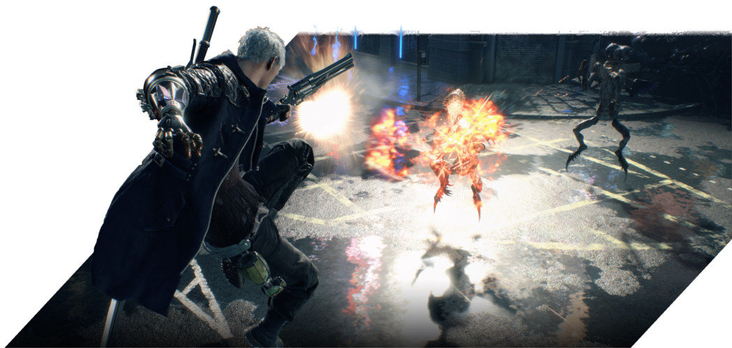 Wyjątkowo dynamiczna akcja – trzy grywalne postacie, każda z innym, niepowtarzalnym stylem walki, podejmą się próby oczyszczenia miasta z hordy demonów. Innowacyjna grafika – przy wykorzystaniu opatentowanego przez Capcom silnika RE Engine, oprawa graficzna zachwyci szczegółowością oraz realistycznymi efektami oświetleniowymi i środowiskowymi. |