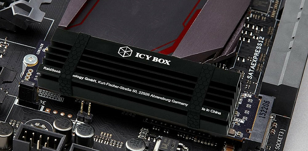 Radiator ICY BOX IB-M2HS-1001 to urządzenie skutecznie ochładzające dyski SSD M.2. Opisywany radiator jest umieszczony bezpośrednio na chipsetach pamięci M.2 SSD, dzięki czemu doskonale pochłania wszelkie ciepło, jakie generuje dysk. Możesz mieć więc pewność, że pamięć nie obniży swojej wydajności przez zbyt wysoką temperaturę. Radiator zadba więc o wydajność oraz wydłuży żywotność dysku.