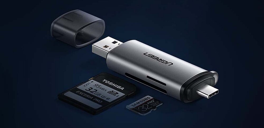 Czytnik kart SD-microSD UGREEN 50706B to niewielkie urządzenie, umożliwiające szybki przesył danych na różne urządzenia z kart pamięci – lub na odwrót. Ma 2 wtyczki USB – typu A oraz typu C i ma 2 wejścia na karty pamięci - SD i micro SD. Transfer plików odbywa się z prędkością do 5 Gb/s.