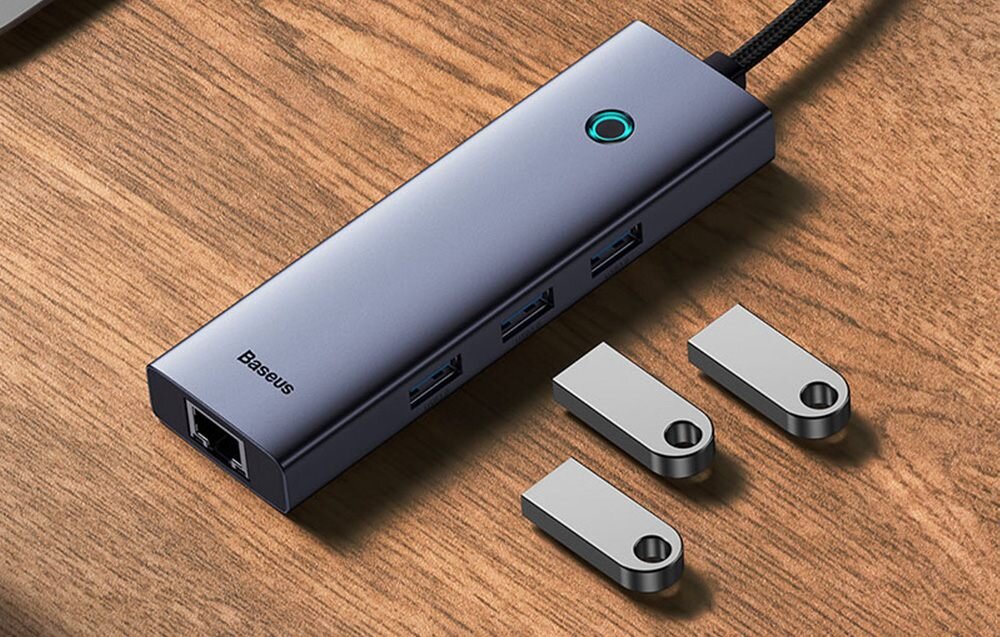 Zadbaj o swoją wygodę podczas pracy przy komputerze dzięki wszechstronnemu hubowi 4w1. Baseus UltraJoy wyposażono w trzy porty USB-A 3.0, umożliwiające przesył danych z imponującą prędkością do 5 Gbps oraz gniazdo RJ45, dzięki któremu możesz cieszyć się prędkością nawet 1000 Mbps. Adapter współpracuje z różnorodnymi urządzeniami z systemami: Windows, Apple OS, Linux, Vista itd., a jego kompaktowa konstrukcja pozwala mieć go zawsze pod ręką, zapewniając wygodę i funkcjonalność w wykonywaniu codziennych zadań.