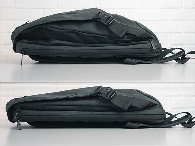 Komora, przeznaczona do przenoszenia laptopów o przekątnej maksymalnie 14.1”, umieszczona została z tyłu plecaka. Wyściełano ją miękkim materiałem z dodatkowym wypełnieniem dla ochrony przenoszonego sprzętu. Dzięki bocznemu zamkowi, dostęp do laptopa jest szybki i nie wymaga otwierania całego plecaka.