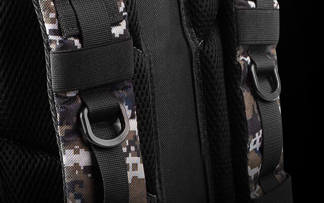 MILITARNY CHARAKTERPallad 450 Camo wyposażony został w system typu Molle oraz D ringi, które umieszczono na szelkach. Dzięki temu plecak umożliwia zamocowanie oprzyrządowania taktycznego. Funkcja ta w połączeniu z militarnym designem da Ci możliwość przetrwania w każdych warunkach. | |