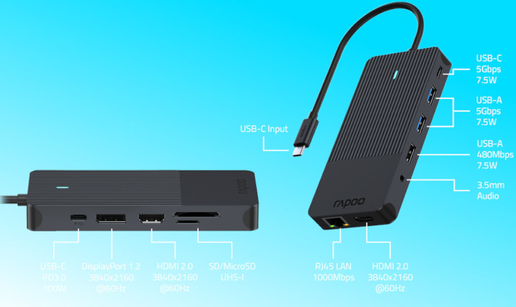 Uprość swoje życie dzięki RAPOO UCM-2006, urządzeniu niezbędnemu dla każdego, kto potrzebuje podłączyć różne urządzenia do swojego notebooka poprzez USB typu C. Dzięki eleganckiej i wytrzymałej obudowie z aluminium, RAPOO UCM-2006 umożliwia podłączenie 11 urządzeń i jednoczesne ładowanie urządzenia hosta poprzez USB typu C. Ciesz się rozwiązaniem all-in-one, które obejmuje wszystkie potrzeby związane z połączeniami multimedialnymi.