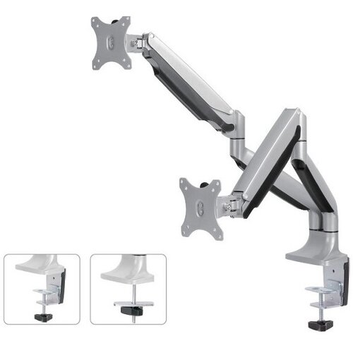 Uchwyt biurkowy firmy NewStar przeznaczony dla monitora o przekątej 10" - 32". Posiada możliwość regulacji nachylenia w pionie, obrotu w poziomie i wysokość. Dopuszczalne obciążenie: 9 kg.