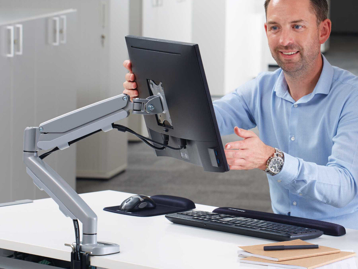 Monitorowe ramię FELLOWES Eppa 9683001 nie tylko poprawi ergonomię pracy w Twoim biurze, ale również idealnie uzupełni jego aranżację. Uchwyt jest dostępny w 3 kolorach - białym, czarnym oraz srebrnym - dzięki czemu z pewnością wybierzesz odpowiedni kolor do wnętrza swojego biura lub pokoju.