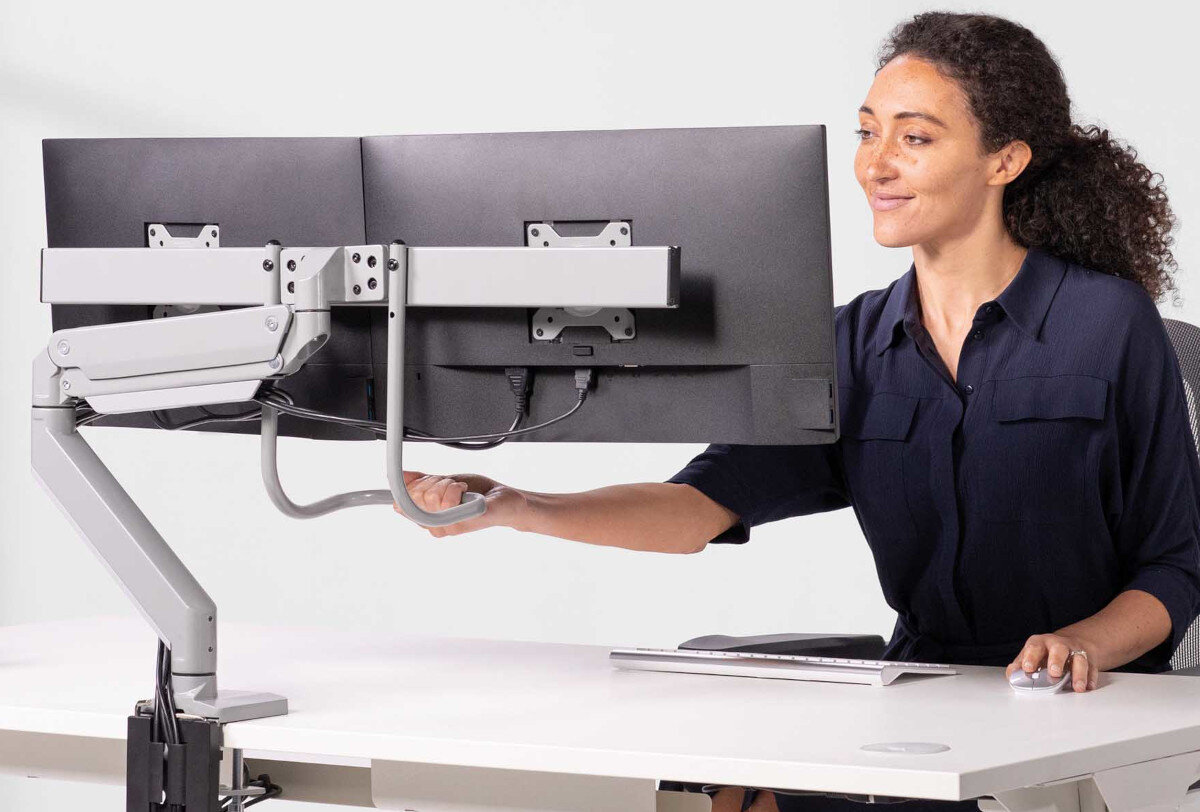 Dzięki systemowi zarządzania kablami wbudowanemu w ramię, możliwe jest poprowadzenie kabli wewnątrz ramion, dzięki czemu całkowicie zapominasz o nieestetycznie wiszących kablach, a tym bardziej o ryzyku nadepnięcia na nie lub ich odłączenia.
