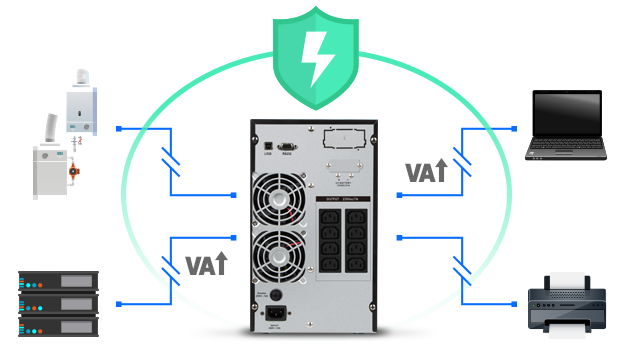 BEZPIECZEŃSTWO UPS ARMAC - OCHRONA PRZED PRZECIĄŻENIEMCo istotne, każdy system awaryjnego zasilania Armac został wyposażony w moduł zabezpieczający przed przeciążeniem. Gdy w czasie swojej normalnej pracy UPS jest przeciążony, urządzenie automatycznie zakończy w bezpieczny sposób zasilanie podpiętych do niego sprzętów. Rozwiązanie to wzmacnia bezpieczeństwo oraz komfort użytkowania zasilaczy awaryjnych Armac. | |