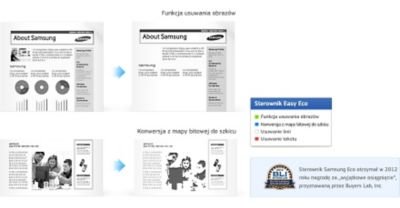 | Sterownik Easy Eco Teraz zaoszczędzisz nawet 20% tonera do drukarki dzięki zastosowaniu sterownika Samsung Easy Eco. To przydatne oprogramowanie redukuje także zużycie papieru i energii, umożliwiając użytkownikom usuwanie zbędnego tekstu i obrazu, a także konwersję z bitmapy do szkicu. Sterownik Easy Eco został wyróżniony w 2012 roku nagrodą za wyjątkowe osiągnięcia przez Buyers Laboratory (BLI). |