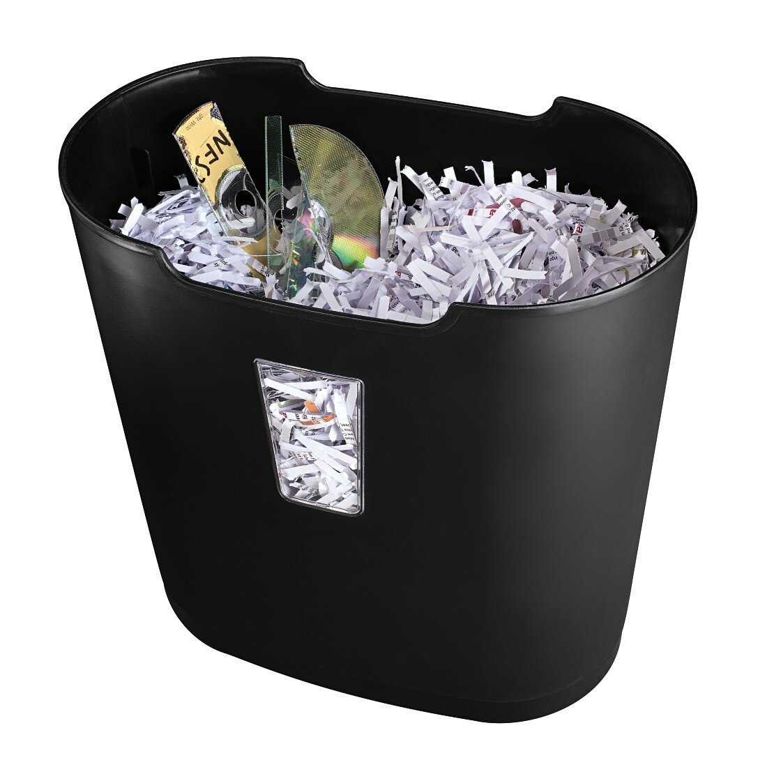 Obudowa niszczarki jest w kolorze czarnym i ma owalny kształt. Z pewnością będzie idealnie komponować się z innymi niezbędnymi urządzeniami zarówno w służbowym, jak i domowym biurze.