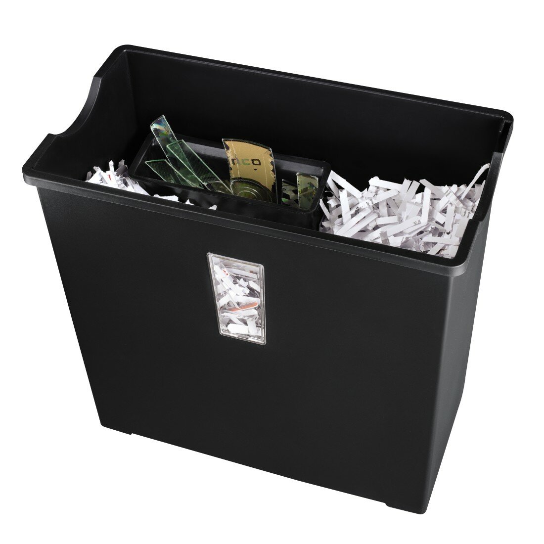 Wysokiej jakości stalowe noże dają możliwość niszczenia dokumentów razem ze zszywkami, co przy dużej ilości dokumentów jest bardzo wygodne. Przeźroczyste okienko w pojemniku na ścinki pozwala kontrolować poziom napełnienia.