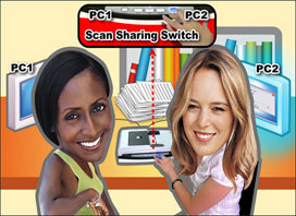 Dziel się! Dwa porty USB pozwalają dwóm komputerom na współdzielenie skanera SmartOffice za pomocą funkcji Share! Przyciski skanowania pozwalają użytkownikowi na wysłanie zeskanowanego obrazu do każdego z komputerów po jednorazowym naciśnięciu przycisku. Aplikacje, które do tej pory wymagały dwóch skanerów podłączonych do przypisanych im stacji roboczych, mogą teraz pracować z tylko jednym skanerem. Oszczędza to Twoje pieniądze i miejsce na biurku. Oczywiście, skaner SmartOffice PL1530 może być również używany z jednym komputerem. |