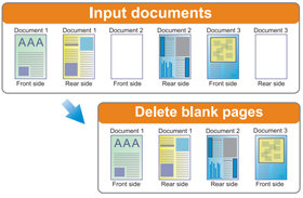 | ● Usuwanie pustych stron Automatycznie usuwa puste strony, bez potrzeby ręcznej edytowania dokumentu. |