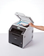 Urządzenie charakteryzuje się szybką i intuicyjną obsługą. Posiada kolorowy, dotykowy wyświetlacz LCD o przekątnej 9,3 cm, podajniki papieru o łącznej pojemności 300 arkuszy (250 + 50) oraz automatyczny podajnik dokumentów o pojemności 35 arkuszy. Model można uzupełnić również o opcjonalną tacę, która może pomieścić kolejne 500 kartek. Urządzenie wyposażone jest także w wydajny skaner, który pozwala na skanowanie do sieci (tylko dla Windows®) oraz do serwera FTP. |