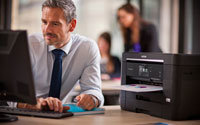 Model Brother działa w sieciach bezprzewodowych i przewodowych oraz obsługuje technologię Wi-Fi Direct™ . Urządzenie jest wyposażone w intuicyjny, kolorowy wyświetlacz dotykowy o przekątnej 9,3 cm, umożliwiający szybką i prostą obsługę sprzętu. MFC-J5720DW pozwala użytkownikom na łatwą konwersję skanów na pliki programów z pakietu Microsoft Office oraz wysyłanie skanów jako wiadomości e-mail – oba te zadania mogą być wykonywane z poziomu menu urządzeń. Produkt oferuje także przydatną funkcję zakreślania (Outline&Scan oraz Outline&Copy), która pozwala użytkownikom łatwo wybierać obszar, który ma zostać zeskanowany lub skopiowany. Urządzenie wielofunkcyjne MFC-J5720DW pozwala na integrację z rozwiązaniami mobilnymi i chmurowymi. Model wykorzystuje aplikację Brother iPrint&Scan, która umożliwia bezpośrednie skanowanie do i drukowanie z urządzeń mobilnych, takich jak iPhone, iPad oraz tabletów i smartfonów korzystających z systemów Android czy Windows Phone. Dodatkowo, aplikacja iPrint&Scan pozwala na skanowanie do i drukowanie z usług DropBox, Evernote™ , Google Drive™ i OneDrive. |