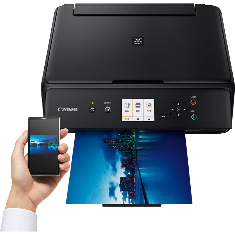 | Drukowanie z dowolnego miejsca Wbudowany w urządzenie PIXMA TS5050 Series moduł Wi-Fi umożliwia drukowanie z urządzenia inteligentnego lub komputera – wszystko dzięki obsłudze systemów Android, iOS i Windows 10 Mobile oraz funkcji Google Cloud Print. Ponadto możesz udostępniać zdjęcia wyjątkowych chwil za pomocą aparatu z funkcją Wi-Fi lub wbudowanego czytnika kart SD. |
