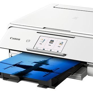 To małe, zaawansowane urządzenie wielofunkcyjne o eleganckim, kwadratowym kształcie, wyposażono w 6 oddzielnych atramentów, inteligentną łączność bezprzewodową, w tym z usługami w chmurze, i automatycznie odchylany panel z ekranem dotykowym o przekątnej 10,8 cm. Dzięki temu drukowanie znakomitej jakości zdjęć i wyraźnego tekstu jest kwestią sekund.